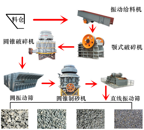 制砂生產(chǎn)線需要根據(jù)不同的工藝要求來配置設(shè)備。一般情況下,常用的設(shè)備有振動給料機、顎式破碎機、液壓圓錐破碎機、反擊式破碎機、立軸沖擊式破碎機、振動篩以及其它的配套設(shè)備等,每種產(chǎn)品都有不同的型號以及適用物料。